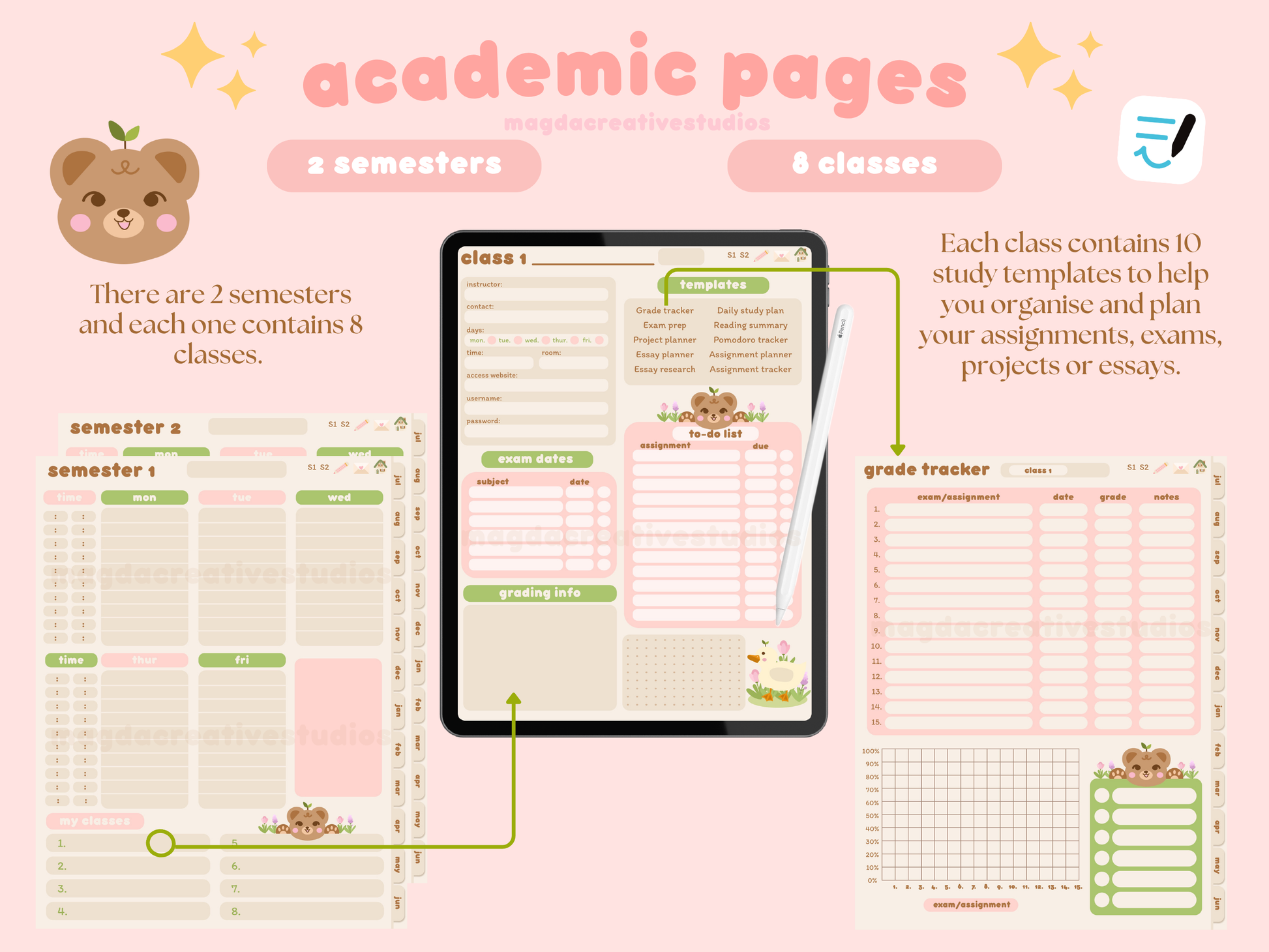 Our GoodNotes student planner is a must-have tool for any student who wants a cute and fun planner that will help you stay organised, focused and on top of your academic game. 🥰📝