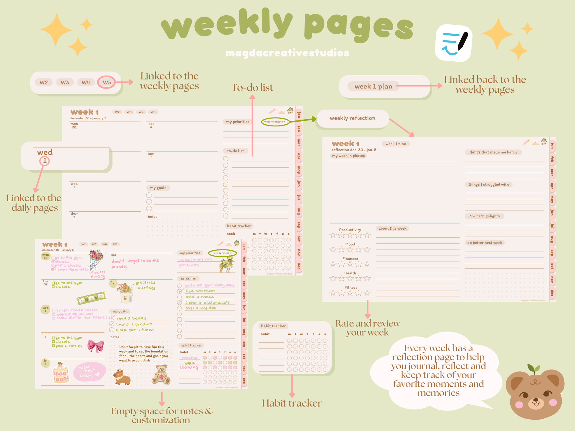 Also, each week of the year has a corresponding weekly reflection page that is linked in the weekly planner. 📖 This page makes it super easy to start journaling and keep all your favorite photos, memories, ideas and thoughts in one place. 📝🌷