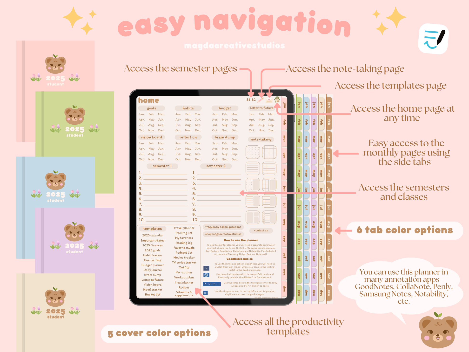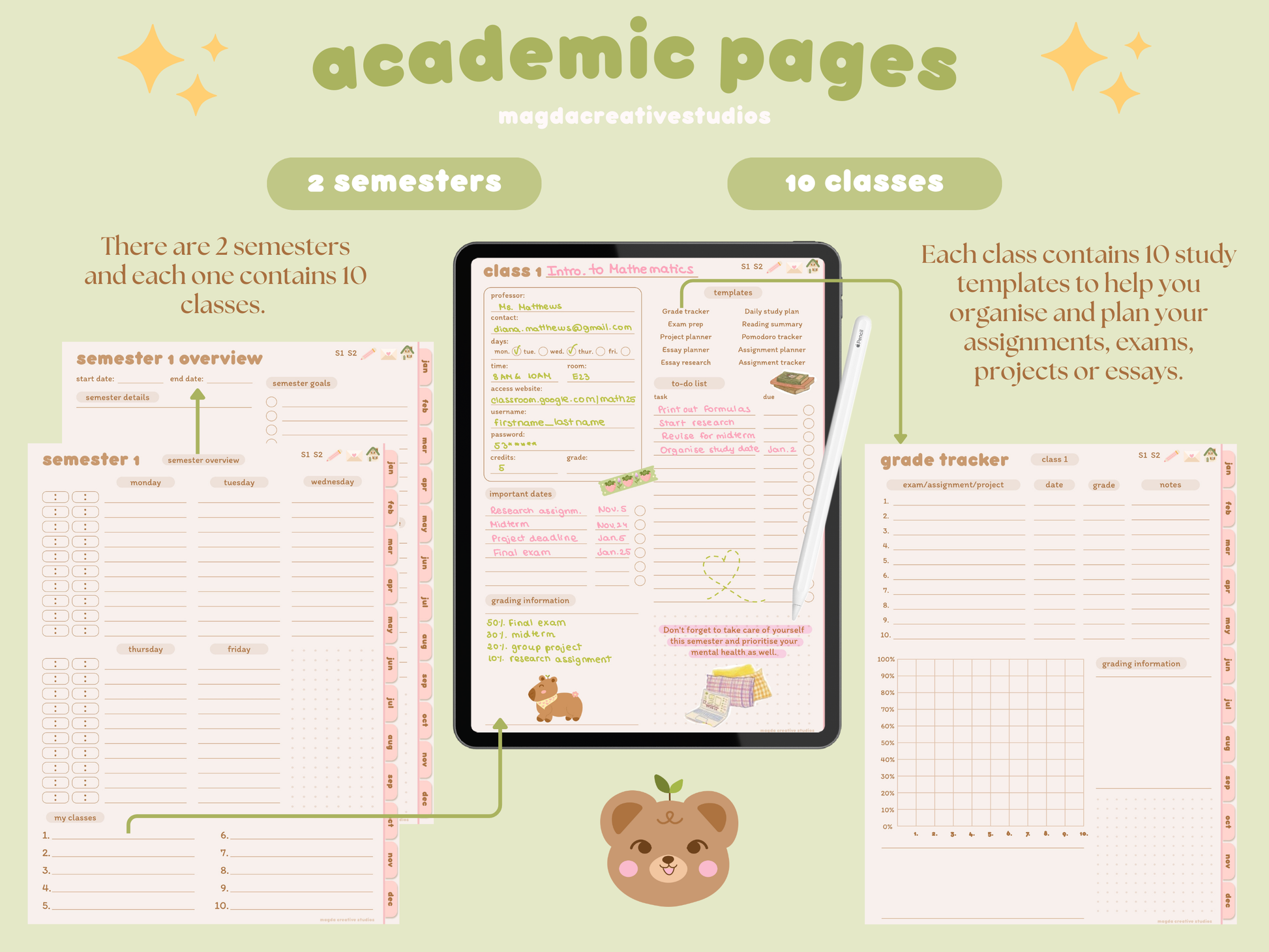 This year, we’ve added 11 new productivity and personal templates, giving you even more ways to plan and organize every area of your life. 🤭🐻 Also, now there are 2 extra classes added to each semester so you have more space for all your courses or labs. 😊