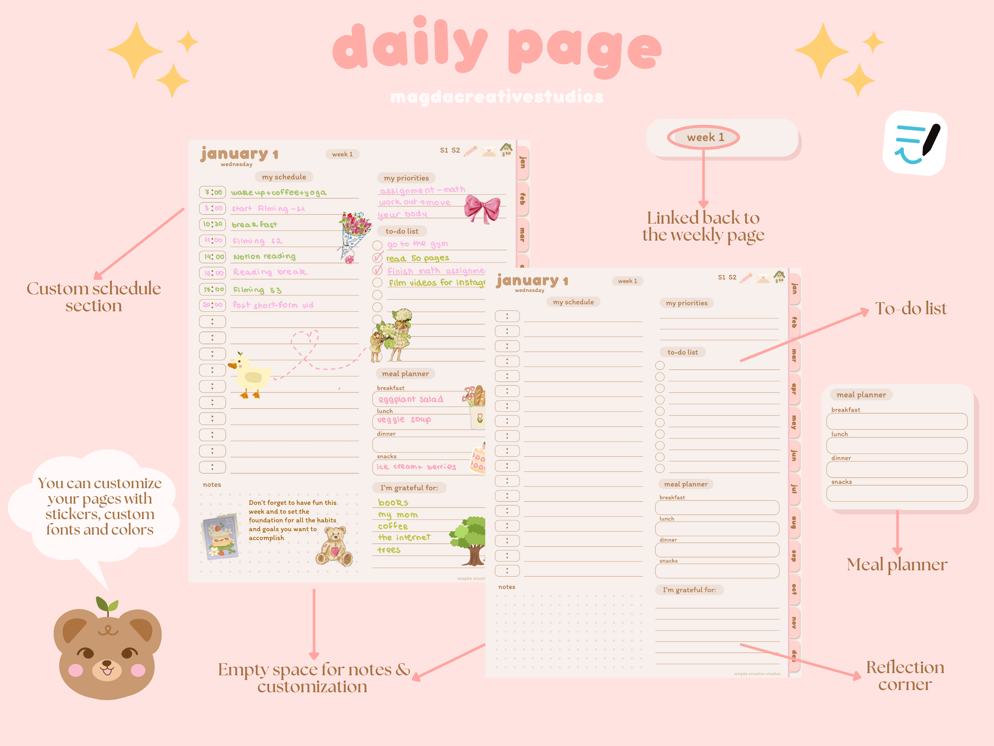 📱 Our daily planner comes in PDF format, making it ideal for GoodNotes or any other PDF annotation app ( Notability, NoteShelf, CollaNote, Samsung Notes, Penly, etc.) on various devices - iPad/tablet, phone, laptop or desktop.