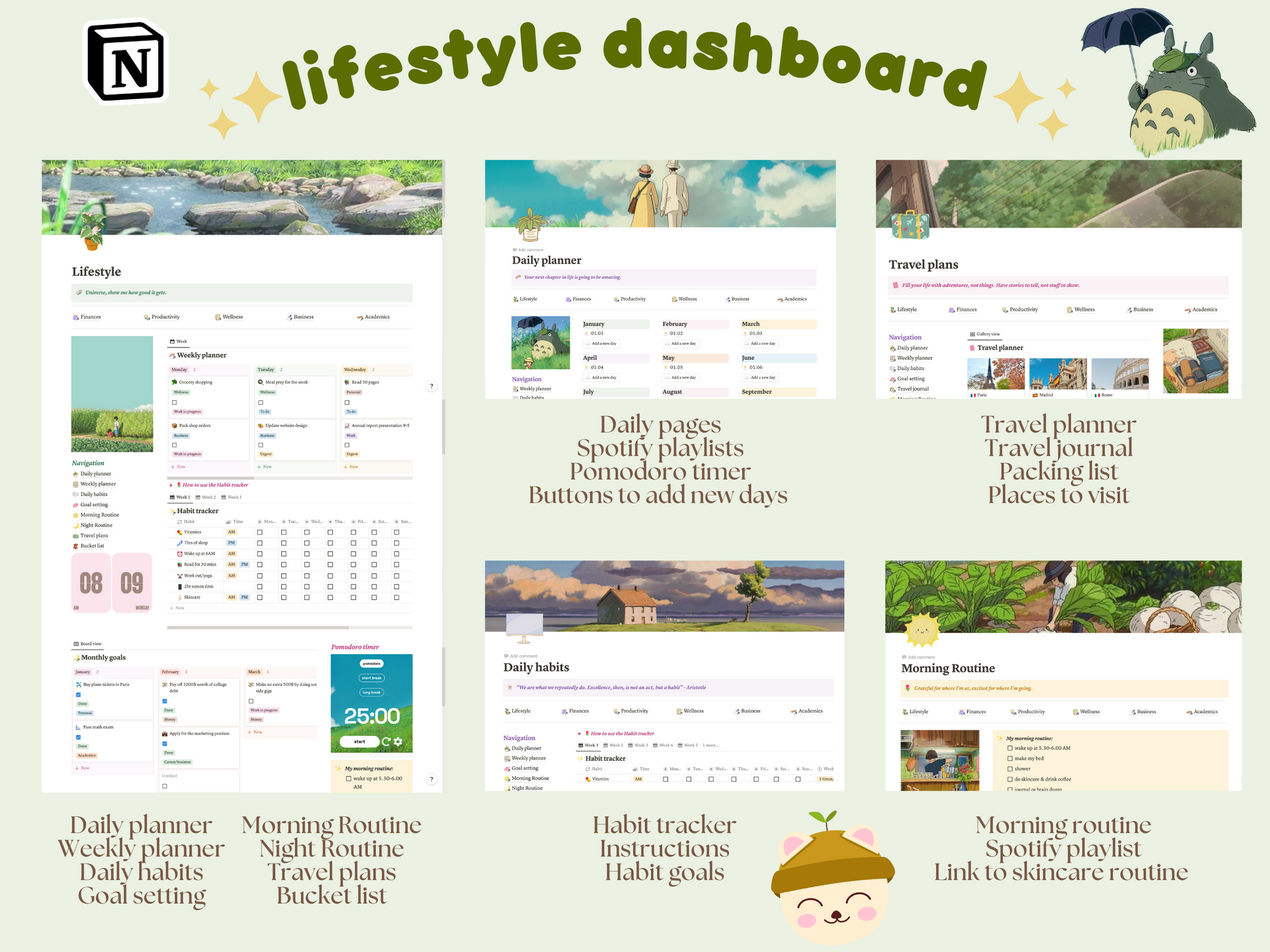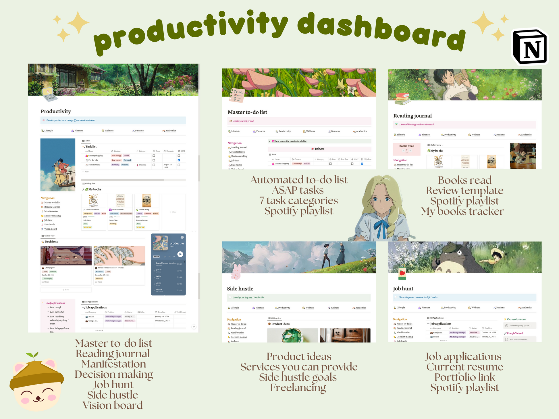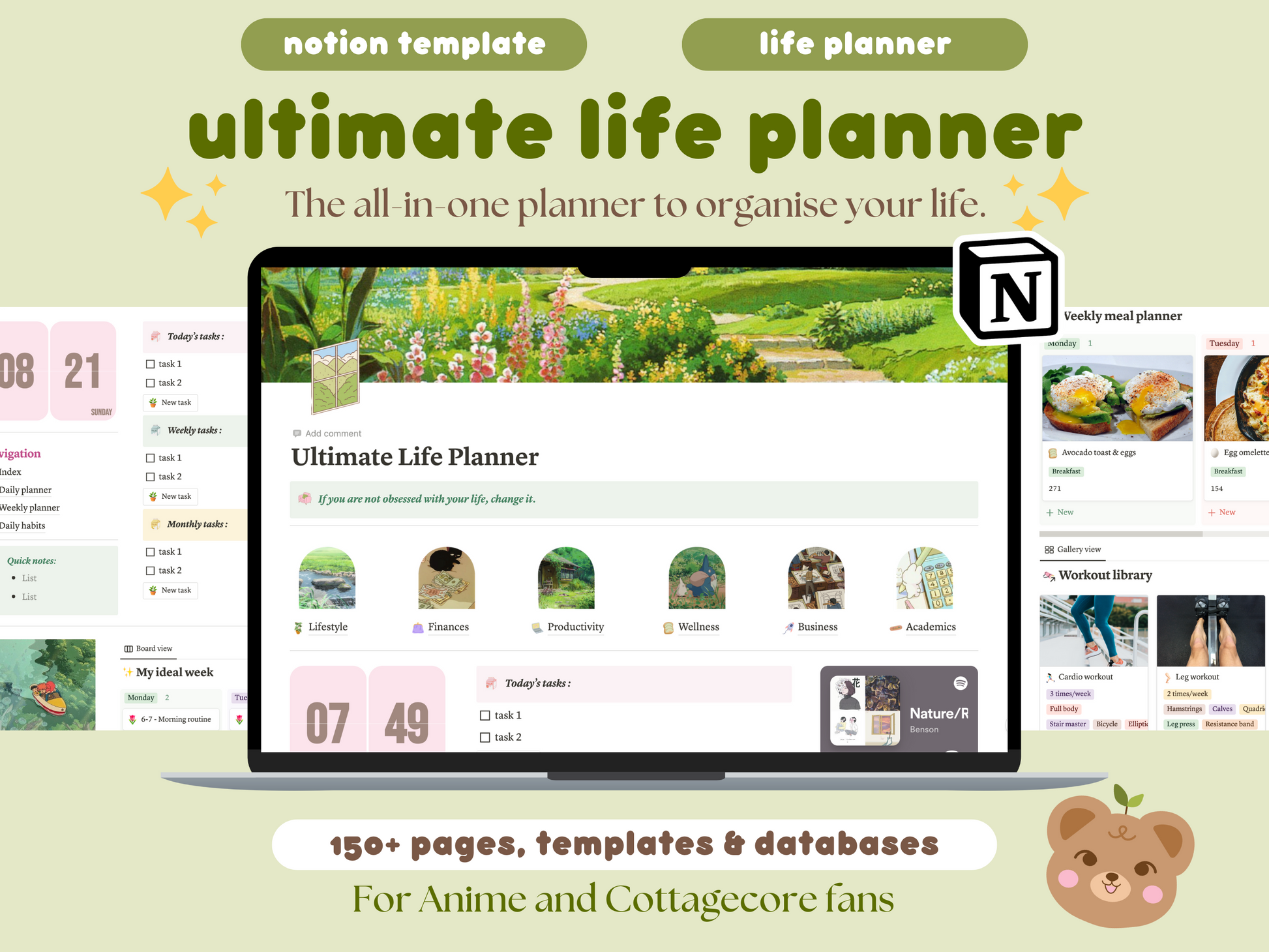 Introducing our Ultimate Notion Life Planner - where Studio Ghibli's enchanting world meets the whimsical charm of the Cottage Core aesthetic. 🌱🚃🧚♀️ Say goodbye to boring planning and hello to a magical journey through your daily tasks and dreams! 📝✨