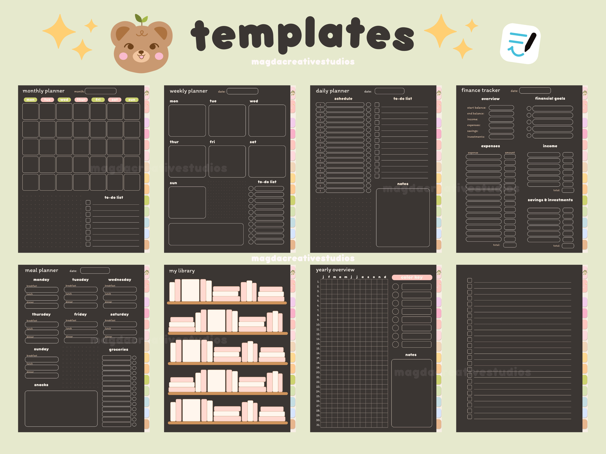 Our Dark Mode Digital Notebook is a must-have tool for anyone who wants a cute digital notebook for note-taking, journaling and planning. 😊📝