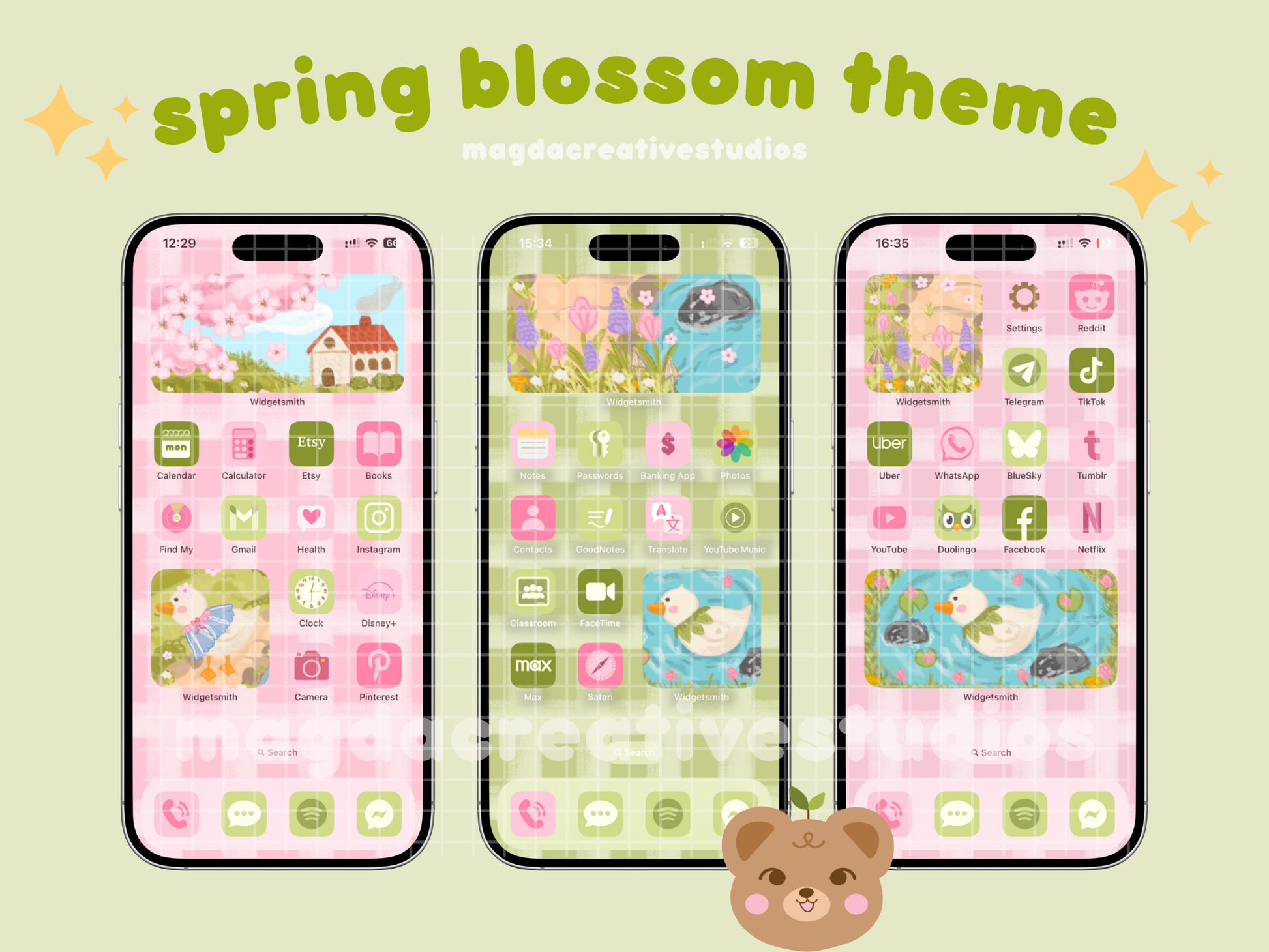 Introducing our Spring Blossom Phone Theme - the perfect spring icon set to customise your phone and add more whimsy to your devices. 📱🌱🪿🌸🏡 You can now say goodbye to those boring app icons and wallpapers and finally use an aesthetic & cute phone theme.